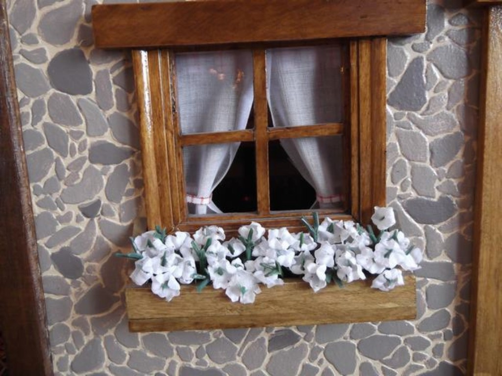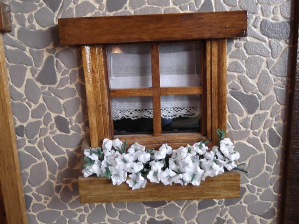 La ventana de la cocina vista de fuera, en la fachada.En una casa hecha por mi, no pueden faltar las flores.